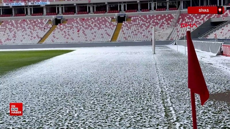 Lig'in 31'inci haftasında yarın Sivasspor ile Fenerbahçe'nin karşı karşıya geleceği 4 Eylül Stadı'nın zemini dün geceki kar yağışı ve soğuk hava nedeniyle kısmen karla kaplandı.