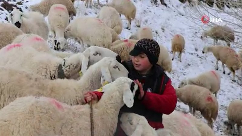 11 yaşındaki öğrenci, babası hasta olduğu için dondurucu soğuğa aldırış etmeden çobanlık yapıyor. Minik çobanı görenlerin yüreği ısınıyor.