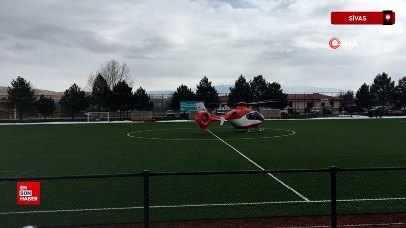 Sivas’ta Zara ilçesinde bir amatör maça ambulans helikopter nedeniyle ara verildi. Sahaya inen helikopter, bir hastayı alarak tekrar havalandı.
