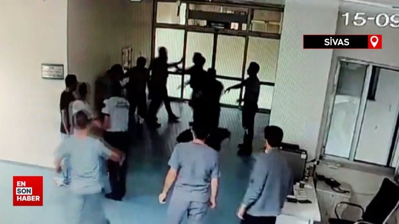 Sivas’ta biri polis 3 hasta yakını meslektaşlarına ve güvenlik görevlilerine saldırdığı anlar güvenlik kameralarına yansıdı.