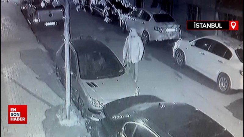 Sultangazi'de park halindeki otomobilin camlarını ve aynalarını kırdı