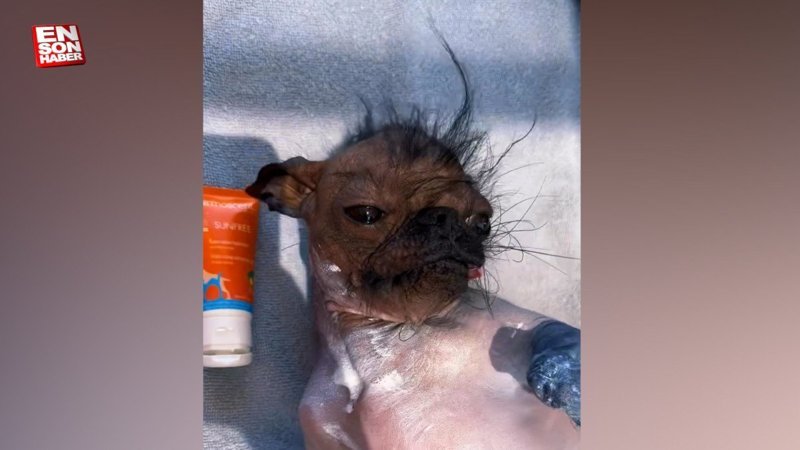 Süreyya Yalçın köpeğine güneş kremi sürdü