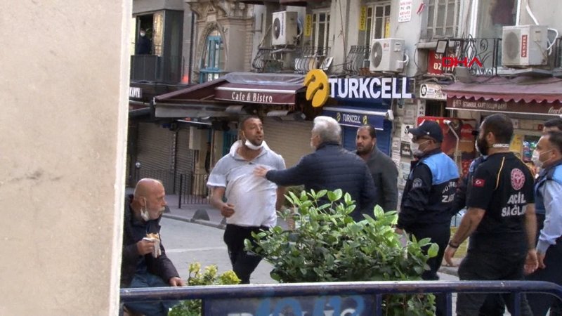 Kısıtlamada parfüm satan seyyar satıcı ile kendisini engellemek isteyen zabıta memurları arasında arbede çıktı. Satıcı gözaltına alınırken, arbedeye rağmen bir kişinin dürümü yemesi dikkat çekti.