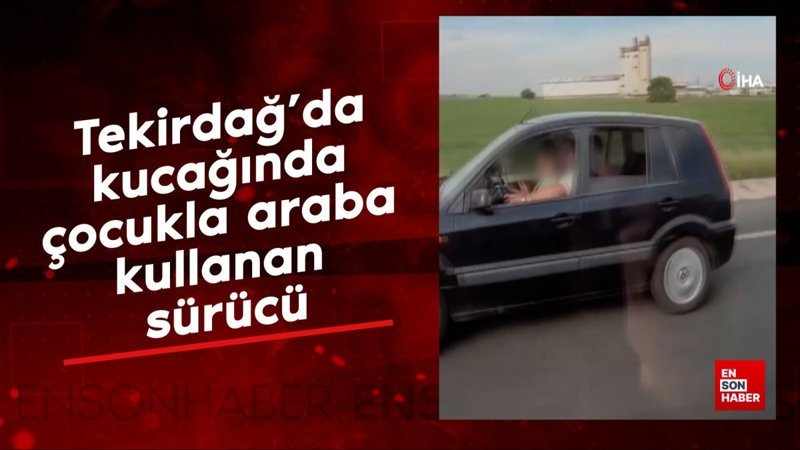 Tekirdağ'da kucağında çocukla araba kullanan sürücü