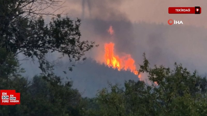 Tekirdağ'da orman yangını havadan görüntülendi