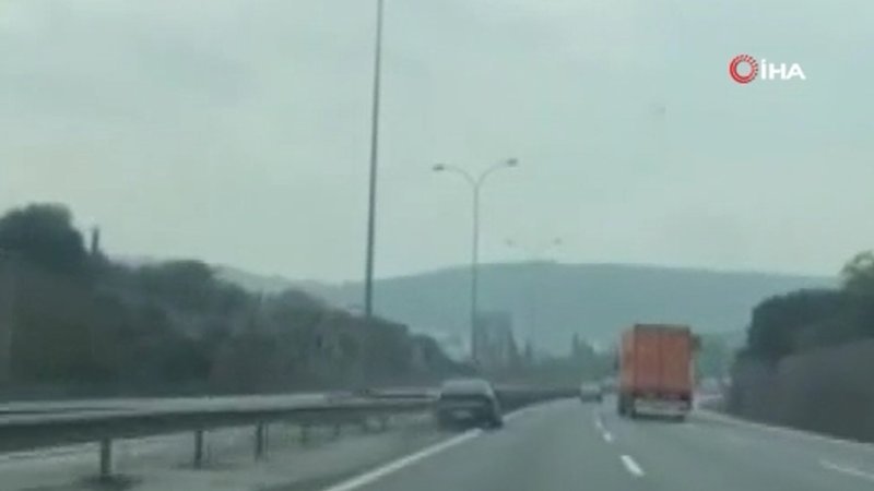 Kocaeli’nin Dilovası ilçesi TEM Otoyolu’nda alkollü sürücünün bariyere çarptığı anlar bir vatandaşın cep telefonu kamerasıyla kaydedildi.