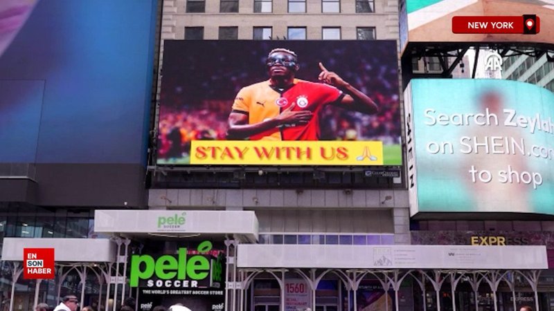Galatasaraylı bir taraftar, Nijeryalı yıldız golcü Victor Osimhen’in önümüzdeki sezonda da takımda kalması için New York’un kalbi Times Meydanı’nda anlamlı bir çağrıda bulundu. Dev dijital ekrana yansıyan “Bizimle Kal (Stay With Us)” mesajı, sarı-kırmızı renklere olan tutkuyu ve Osimhen’e duyulan sevgiyi gözler önüne serdi. Taraftarlar arasında büyük heyecan yaratan bu jest, sosyal medyada da geniş yankı buldu.
