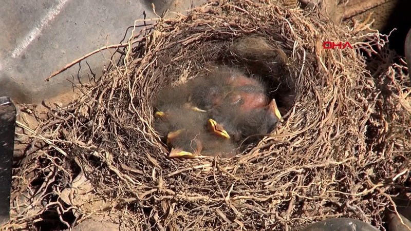 Tokat'ta iş makinesinin motoruna yuva yapan kuşun 6 yavrusu oldu
