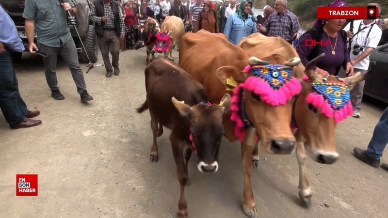 Trabzon'da süslü hayvanlar ve yöresel kıyafetlerle geleneksel yayla göçü