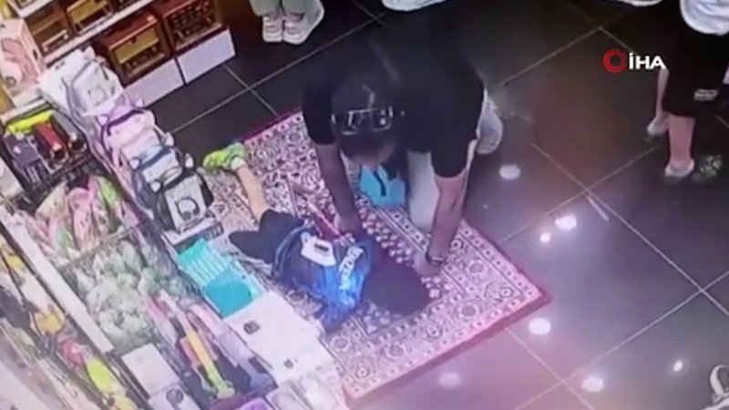 Trabzon'da iş yerine gelen Arap turistin uykusu gelen oğlu için yere seccade sererek bir süre uyumasını sağlayan esnaf hareketi ile Arap turisti duygulandırdı