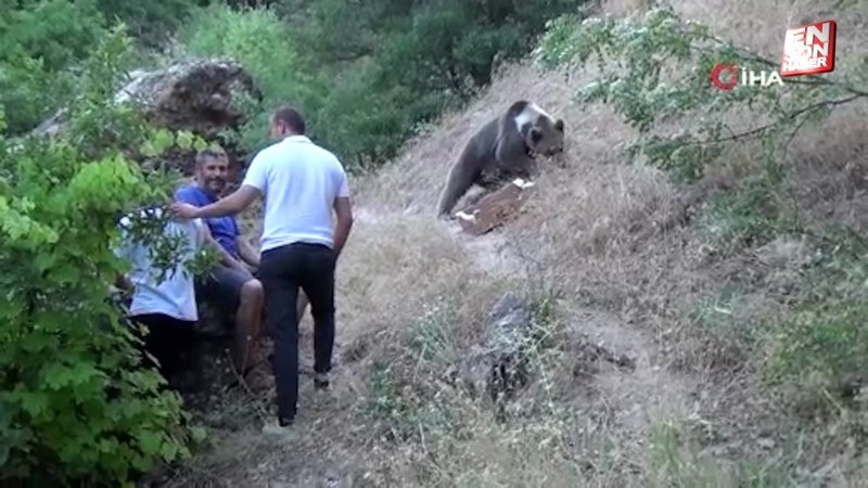 Tunceli’de bozayı, karnını doyurmak için kamp alanına geliyor