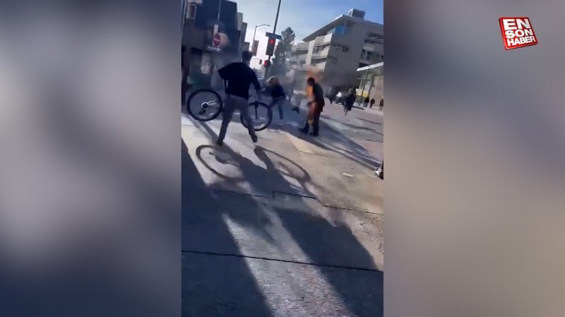 Tutuşan adamı söndürmek için üzerine bisiklet attı