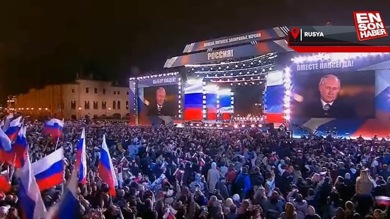 Rusya'nın başkenti Moskova'da bulunan Kızıl Meydan'da toplanan binlerce kişi, Lugansk, Donetsk, Herson ve Zaporijya bölgelerinin Rusya topraklarına katılmasını büyük bir coşkuyla kutladı.