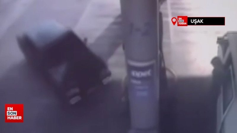 Uşak'ta drift yapmaya çalışan sürücü akaryakıt istasyonuna çarptı