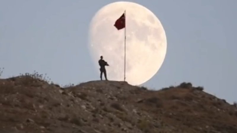 Yılın en büyük ve parlak Ay'ı olan Süper Mavi Ay, Van'da nöbet tutan Mehmetçik ve Türk bayrağının arkasında görüntülendi. Ortaya çıkan manzara görenlerin göğsünü kabarttı.