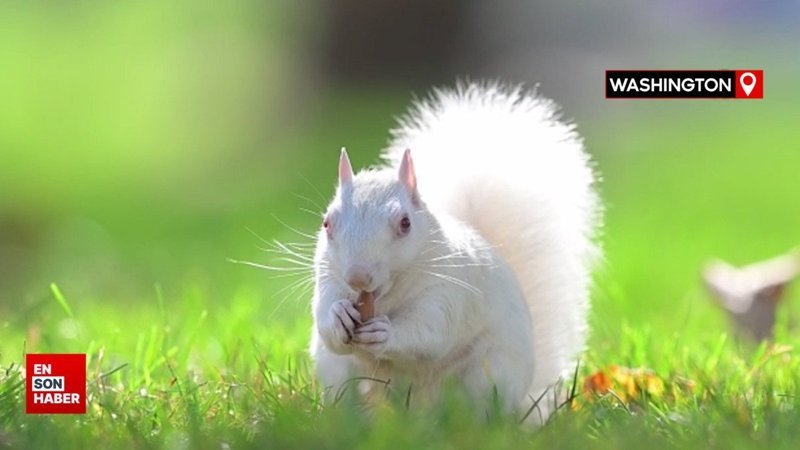Doğada son derece nadir görülen albino sincaplar, tamamen beyaz kürkleriyle ABD'nin başkenti Washington D.C.'daki National Mall etrafında doğal alanlarda görüntüleniyor.