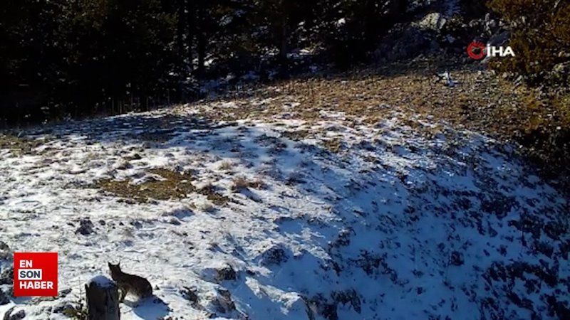 Yaban keçilerini kovalayan vaşak fotokapana takıldı