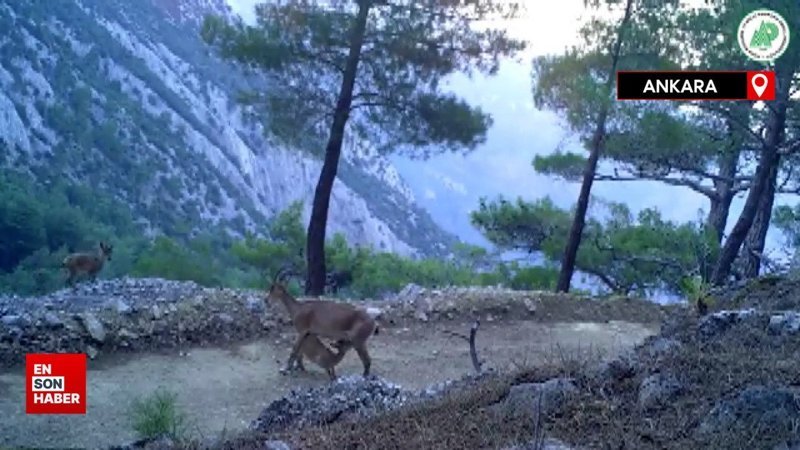 Nesli tükenme tehlikesi altındaki yaban keçilerinin yavrularını besleme anı fotokapanla görüntülendi.