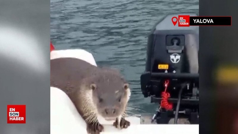 Yalova'da su samuru, balıkçı teknesine çıktı