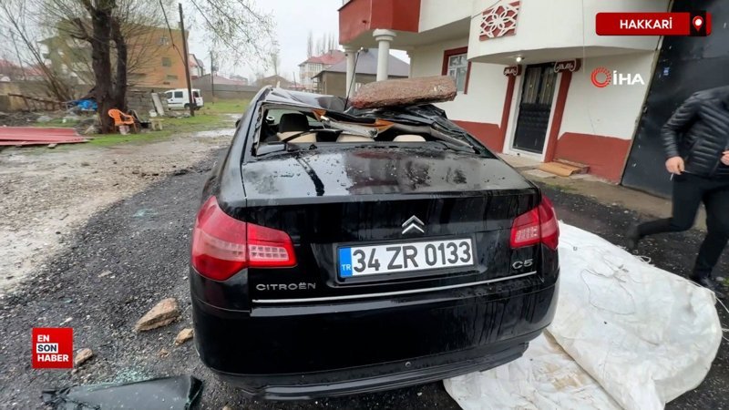 Hakkari'nin Yüksekova ilçesinde dün gece başlayan fırtına nedeniyle çok sayıda evin çatısı uçarken, bir araç ise binadan düşen taş parçası sonucu hasar gördü.