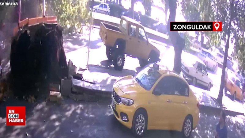 Zonguldak'ın Ereğli ilçesinde 150 yaşında olduğu belirtilen çınar, park halindeki cipin üzerine devrildi. O anlar güvenlik kamerasına yansırken, cipteki 3 kişi çevredekilerce kurtarıldı.
